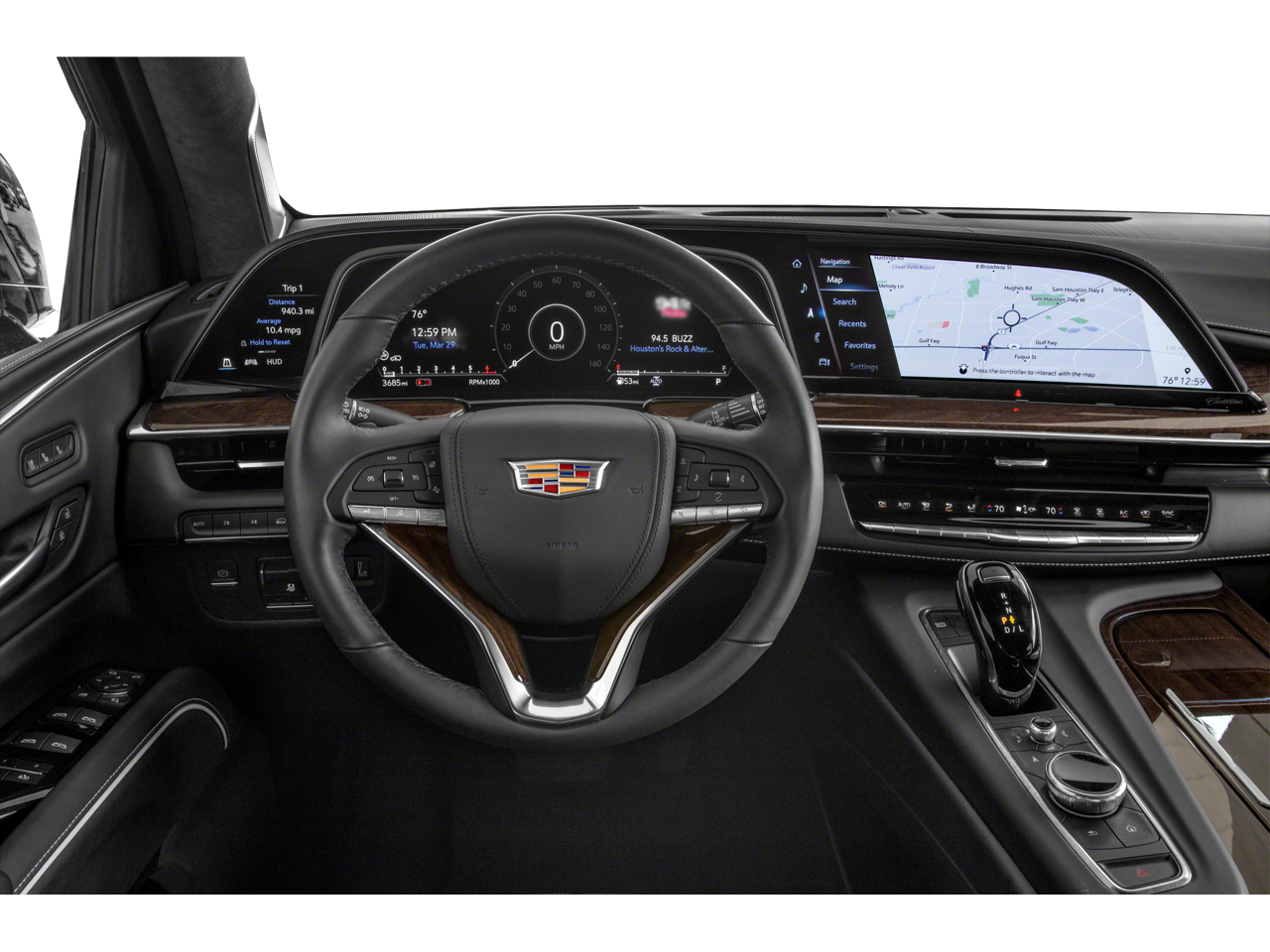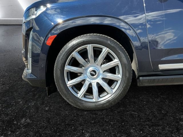 This 2021 Dark Moon Blue Metallic Cadillac Escalade Premium Luxury Platinum 4WD is well equipped and includes these features and benefits: Driver Assist Tech Package (Adaptive Cruise Control, Air Ride Adaptive Suspension, Automatic Seat Belt Tightening, Enhanced Automatic Emergency Braking, Illuminating Front & Rear Sill Plates, Reverse Automatic Braking, and Soft Closing Front & Rear Doors), Preferred Equipment Group 1SG (Air Ionizer, AKG Studio Reference 36-Speaker Audio System, Door Lock & Latch Shields, Electronic Limited-Slip Differential, Enhanced Automatic Parking Assist, Floor Console w/Covered Storage, Glass Breakage Sensor, Hitch Guidance w/Hitch View, In-Vehicle Trailering System App, Integrated Trailer Brake Controller, Lane Keep Assist w/Lane Departure Warning, Platinum Interior Trim, Power Panoramic Tilt-Sliding Sunroof, Rear Camera Mirror, Rear Camera Mirror Washer, Rear Cross Traffic Alert, Rear Seat Entertainment System, Reconfigurable Full-Color Head-Up Display, Running Board Assist Steps, Theft-Deterrent Alarm System, Trailer Side Blind Zone Alert, Vehicle Inclination Sensor, and Vehicle Interior Movement Sensor), Escalade Premium Luxury Platinum, 4D Sport Utility, 6.2L V8, 10-Speed Automatic with Overdrive, 4WD, Dark Moon Blue Metallic, Whisper Beige With Gideon Accents Leather, Navigation System, 16.9 Diagonal OLED Infotainment Screen, 2-Presets Memory For Driver Seat Adjuster, 3.23 Axle Ratio, 3rd row seats: split-bench, 4-Way Power Driver Lumbar Seat Adjuster, 4-Way Power Front Passenger Lumbar Seat Adjuster, 4-Wheel Disc Brakes, 8-Way Power Driver Seat Adjuster, 8-Way Power Front Passenger Seat Adjuster, A/V remote, ABS brakes, Adaptive suspension, Air Conditioning, Alloy wheels, AM/FM radio: SiriusXM with 360L, Apple CarPlay/Android Auto, Audio memory, Auto High-beam Headlights, Auto tilt-away steering wheel, Auto-dimming door mirrors, Auto-dimming Rear-View mirror, Automatic temperature control, Brake assist, Bumpers: body-color, Compass, Delay-off headlights, Door auto-latch, Driver door bin, Driver vanity mirror, Dual front impact airbags, Dual front side impact airbags, Electronic Stability Control, Emergency communication system: OnStar and Cadillac connected services capable, Four wheel independent suspension, Front anti-roll bar, Front Bucket Seats, Front Center Armrest w/Storage, Front dual zone A/C, Front License Plate Bracket, Front reading lights, Full Semi-Aniline Leather Seats, Fully automatic headlights, Garage door transmitter, Genuine wood console insert, Genuine wood dashboard insert, Genuine wood door panel insert, HD Radio, Headphones, Heads-Up Display, Heated & Ventilated Driver & Front Passenger Seats, Heated door mirrors, Heated Driver & Front Passenger Seats, Heated front seats, Heated rear seats, Heated steering wheel, Illuminated entry, Leather steering wheel, Low tire pressure warning, Magnetic Ride Control Suspension, Memory seat, Monochrome Cadillac Emblems (LPO), Occupant sensing airbag, Outside temperature display, Overhead airbag, Overhead console, Panic alarm, Passenger door bin, Passenger vanity mirror, Power door mirrors, Power driver seat, Power Liftgate, Power Lumbar Massage Driver Seat, Power Lumbar Massage Front Passenger Seat, Power moonroof, Power passenger seat, Power steering, Power windows, Power-Retractable Assist Steps, Puddle Lamps w/Cadillac Crest (LPO), Radio data system, Radio: AM/FM/SiriusXM w/Navigation, Rain sensing wipers, Rear air conditioning, Rear anti-roll bar, Rear audio controls, Rear reading lights, Rear window defroster, Rear window wiper, Remote keyless entry, Roof rack: rails only, Security system, SiriusXM w/360L, Speed control, Split folding rear seat, Spoiler, Steering wheel memory, Steering wheel mounted audio controls, Tachometer, Teen Driver, Telescoping steering wheel, Tilt steering wheel, Traction control, Trip computer, Turn signal indicator mirrors, Variably intermittent wipers, Ve