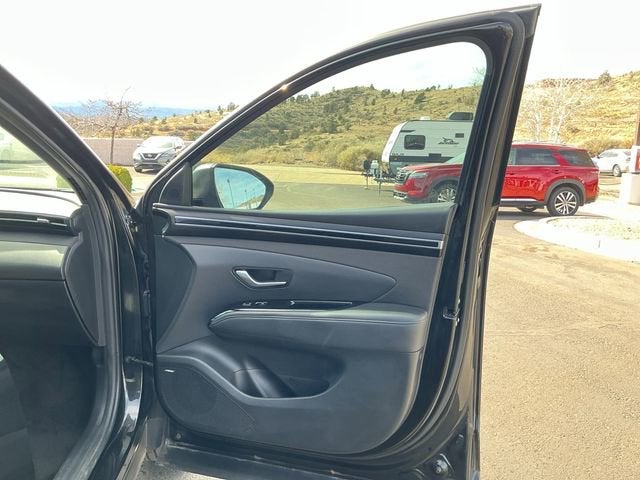 This 2023 Phantom Black Hyundai Santa Cruz Limited AWD is well equipped and includes these features and benefits: Option Group 01, Santa Cruz Limited, 4D Crew Cab, 2.5L I4, Shiftronic, AWD, Phantom Black, Black Leather, Navigation System, 3.316 Axle Ratio, 4-Wheel Disc Brakes, 8 Speakers, ABS brakes, Air Conditioning, Alloy wheels, AM/FM radio: SiriusXM, Apple CarPlay & Android Auto, Auto High-beam Headlights, Auto-dimming Rear-View mirror, Auto-leveling suspension, Automatic temperature control, Bed Cargo Net, Brake assist, Bumpers: body-color, Carpeted Floor Mats, Delay-off headlights, Driver door bin, Driver vanity mirror, Dual front impact airbags, Dual front side impact airbags, Electronic Stability Control, Emergency communication system: Blue Link Connected Car Service (3-year complimentary subscription), Envelop Cargo Net, Exterior Parking Camera Rear, Four wheel independent suspension, Front anti-roll bar, Front Bucket Seats, Front Center Armrest, Front dual zone A/C, Front reading lights, Fully automatic headlights, Garage door transmitter: HomeLink, Heated & Ventilated Front Bucket Seats, Heated door mirrors, Heated front seats, Heated steering wheel, Illuminated entry, Leather Seat Trim, Leather Shift Knob, Low tire pressure warning, Occupant sensing airbag, Outside temperature display, Overhead airbag, Overhead console, Panic alarm, Passenger door bin, Passenger vanity mirror, Power door mirrors, Power driver seat, Power moonroof, Power steering, Power windows, Radio data system, Radio: AM/FM/HD Bose Premium Audio System, Rain sensing wipers, Rear anti-roll bar, Rear step bumper, Rear window defroster, Remote keyless entry, Security system, Speed control, Speed-sensing steering, Split folding rear seat, Spoiler, Steering wheel mounted audio controls, Tachometer, Telescoping steering wheel, Tilt steering wheel, Traction control, Trip computer, Turn signal indicator mirrors, Variably intermittent wipers, Ventilated front seats, and Wheels: 20 x 7.5J Alloy. Santa Cruz Limited, 4D Crew Cab, 2.5L I4, Shiftronic, AWD, Phantom Black, Black Leather, Android Auto/Apple CarPlay, Bluetooth®, Backup Camera, Local Trade!, Tow Package, XM Radio, Leather Seats, ***ONE OWNER!!!, Bose High End Sound Package, Heat Package, Navigation System, Option Group 01.