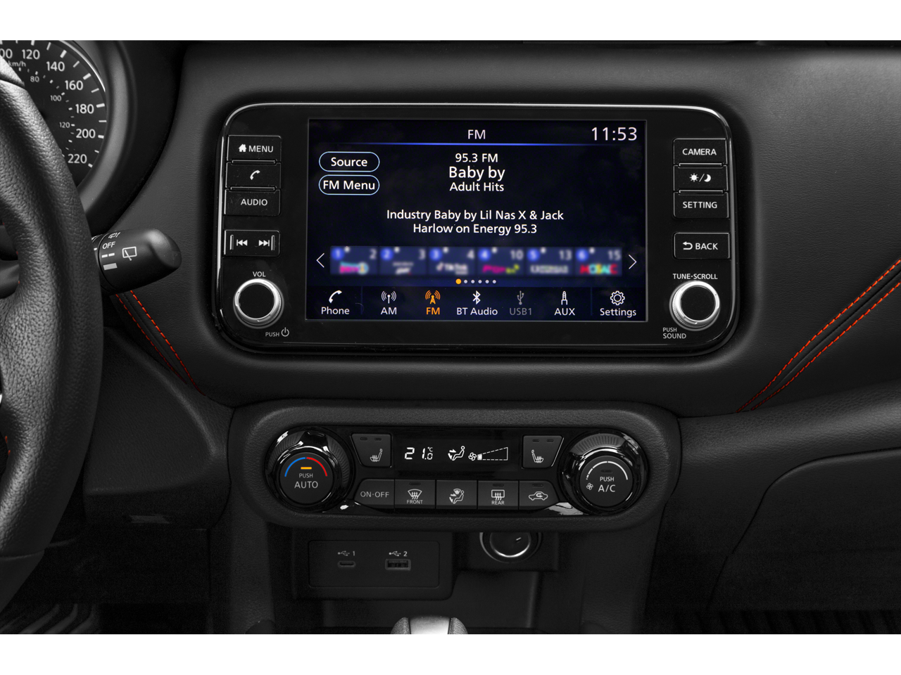 - Radio: AM/FM Audio System -inc: 8" color touchscreen display w/6 speakers, Bluetooth® hands-free phone system, streaming audio via Bluetooth®, Siri Eyes Free, audio and Bluetooth® steering wheel switches, 3 USB ports (1x front charge and data and 2x rear charge only), type C USB (data and charge) (front), NissanConnect featuring Apple CarPlay, Android Auto, SiriusXM satellite radio w/advanced auto features and hands-free text messaging assistant