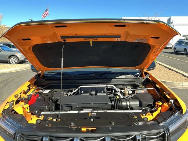 This 2025 Desert Sun GMC Canyon AT4 4WD is well equipped and includes these features and benefits: AT4 Premium Package (6-Way Power Passenger Seat Adjuster, Driver & Front Passenger Ventilated Seats, Driver Memory, Driver Seatback Map Pocket, Heated Steering Wheel, Perforated Leather-Appointed Seat Trim, Power Passenger Lumbar Control Seat Adjuster, Rear Center Fold-Down Armrest w/2 Cupholders, and Wireless Phone Charging), Canyon Safety Plus Package (Blind Zone Steering Assist w/Trailering, Rear Cross Traffic Braking, and Ultrasonic Rear Park Assist), Nightfall Edition (Bed-Mounted Tubular Sport Bar (LPO), Black Badges (LPO), Rocker Panel Protector (LPO), and Wheels: 20 x 9 Machined Faced Aluminum), Preferred Equipment Group 4SG (120-Volt Bed Mounted Power Outlet, 2 Rear USB Ports in Center Console (Charge-Only), 8-Way Power Driver Seat Adjuster, Automatic Emergency Braking, Canyon Pro Safety, Driver & Front Passenger Illuminated Visors, Dual-Zone Auto Climate Control Air Conditioning, EZ-Lift & Lower Tailgate, Following Distance Indicator, Forward Collision Alert, Front LED Fog Lamps, Front Pedestrian & Bicyclist Braking, Heated Driver & Front Passenger Seats, Inside Rear-View Auto-Dimming Mirror, IntelliBeam Automatic High Beam On/Off, Interior Overhead Courtesy Light w/Dual Reading Lamp, Lane Keep Assist w/Lane Departure Warning, MultiStow Tailgate Storage Compartment, Power Driver Lumbar Control Seat Adjuster, Rear of Console 120-Volt Power Outlet, Remote Vehicle Starter System, Tailgate Keyed Cylinder Lock, and Tilt & Telescopic Manual Steering Column), Skid Plate Package (LPO), Technology Plus Package (Adaptive Cruise Control, HD Surround Vision, Laminated Windshield Acoustic Glass, Multicolor 6.3 Diagonal Head-Up Display, Power Inner Sliding Glass Sunroof w/Manual Shade, Premium 7-Speaker Bose Sound System, and Rear Pedestrian Alert), Canyon AT4, 4D Crew Cab, 2.7L I4 Turbocharged DOHC 16V LEV3-SULEV30 310hp, 8-Speed Automatic, 4WD, Desert Sun, Jet Black/Timber Leather, Navigation System, 2 1st Row USB Charge/Data Ports, 3.42 Rear Axle Ratio, 4-Way Manual Front Passenger Seat Adjuster, 4-Wheel Disc Brakes, 6 Speakers, 6-Speaker Audio System Feature, ABS brakes, Air Conditioning, Alloy wheels, AM/FM radio, Apple CarPlay/Android Auto, Auto High-beam Headlights, Auto-dimming Rear-View mirror, Automatic Stop/Start, Automatic temperature control, Brake assist, Bumpers: body-color, Cloth/CoreTec Seat Trim, Compass, Delay-off headlights, Driver door bin, Driver Mode Selector, Driver vanity mirror, Dual front impact airbags, Dual front side impact airbags, Electronic Stability Control, Emergency communication system: OnStar, Front anti-roll bar, Front Bucket Seats, Front Center Armrest, Front dual zone A/C, Front fog lights, Front Passenger Seatback Map Pocket, Front reading lights, Front wheel independent suspension, Heated door mirrors, Heated front seats, Illuminated entry, Integrated Trailer Brake Controller, Low tire pressure warning, Occupant sensing airbag, Off-Road Suspension, Outside temperature display, Overhead airbag, Overhead console, Panic alarm, Passenger door bin, Passenger vanity mirror, Power door mirrors, Power driver seat, Power steering, Power windows, Radio data system, Radio: 11.3 Diagonal Premium GMC Infotainment Sys, Rear reading lights, Rear step bumper, Rear window defroster, Remote keyless entry, Security system, SiriusXM w/360L, Speed control, Speed-sensing steering, Split folding rear seat, Spray-On Bedliner w/GMC Logo, Steering wheel mounted audio controls, Stop/Start System Disable Button Engine Control, Tachometer, Telescoping steering wheel, Tilt steering wheel, Traction control, Trip computer, Variably intermittent wipers, Wheels: 18 x 8.5 Dark Gray Machined Finish Alum, and Wireless Apple CarPlay/Wireless Android Auto. Canyon AT4, 4D Crew Cab, 2.7L I4 Turbocharged DOHC 16V LEV3-SULEV30 310hp, 8-Speed Automatic, 4WD, Desert Sun, Jet Black/Timbe